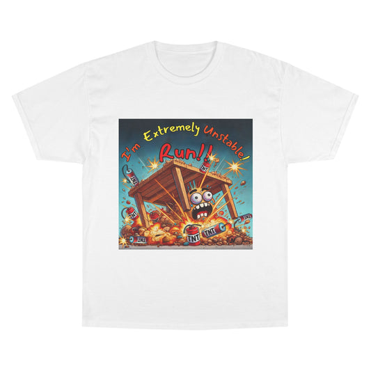 Champion T-Shirt - “I'm Extremely Unstable! Run!”